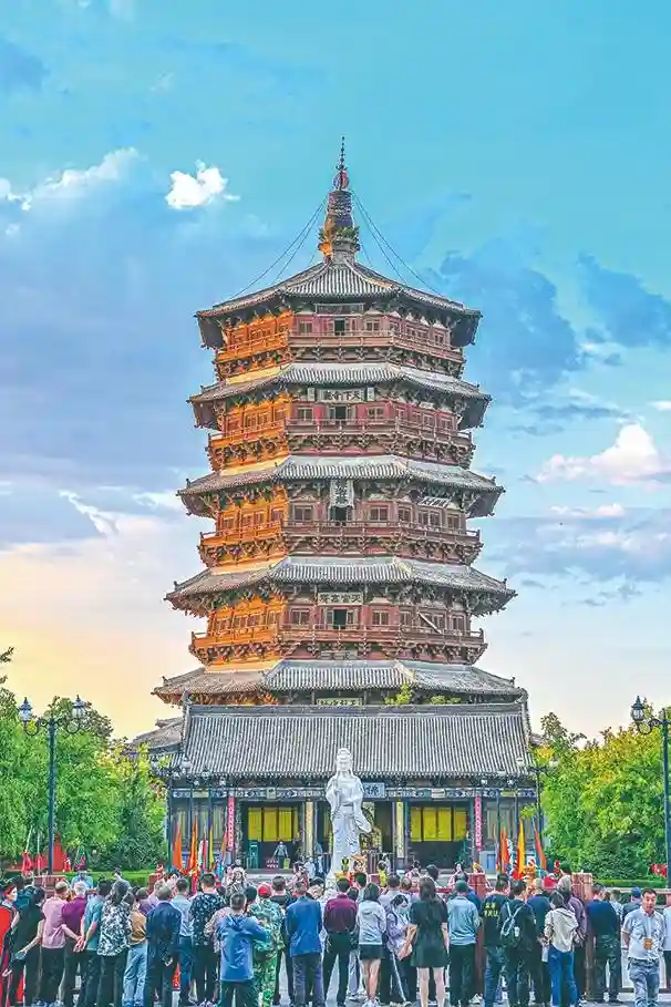 时光流转,这座世界最高木塔一直是中国人刻在骨子里的文化自信。它高67.31米,50余种斗拱装点其中,历经千年风雨、地震、战争而不倒,用榫卯结构创造了中国建筑史上的奇迹。应县木塔旅游公司董事长车建国说,“来看它的人越来越多,去年90万人次,今年上半年就已达到80多万。”