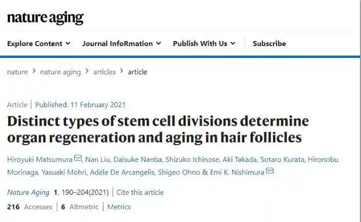 通过这2种不同的方式研究人员发现在衰老的小鼠中,毛囊干细胞并非使用不对称分裂来进行复制,这种无法持续毛发再生的模式可能和细胞分裂物质的变化有关。