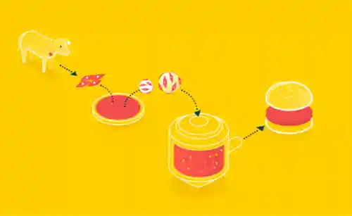 另一类,利用动物干细胞来制造人造肉,在工艺上就要复杂得多。科学家想要哪种动物的人造肉,就得从那种动物身上提取干细胞。