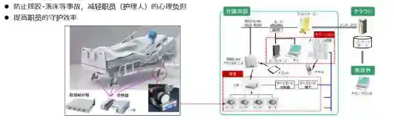 理光集团提供的陪护床传感器系统,可以既非接触又非侵袭,但高精度地感知被护理人的状态,包括位置、姿势、动作、睡眠、觉醒、活动量等,并可以实时远程掌握被护理人的状态,使得护理人员可以根据被护理人的活动履历改善护理计划。