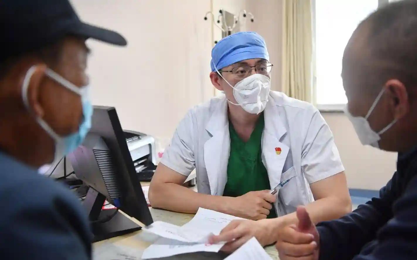 北京大学泌尿外科医生郝瀚在门诊为患者问诊,他也是科室里第一个援藏医生。新京报记者李木易摄