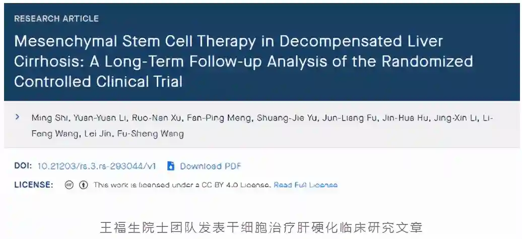 王福生院士团队,早在2012年就发现,接受间充质干细胞输注治疗的患者腹水量明显减少,肝功能显著改善。在本次研究中更是进一步证明了他的理论。