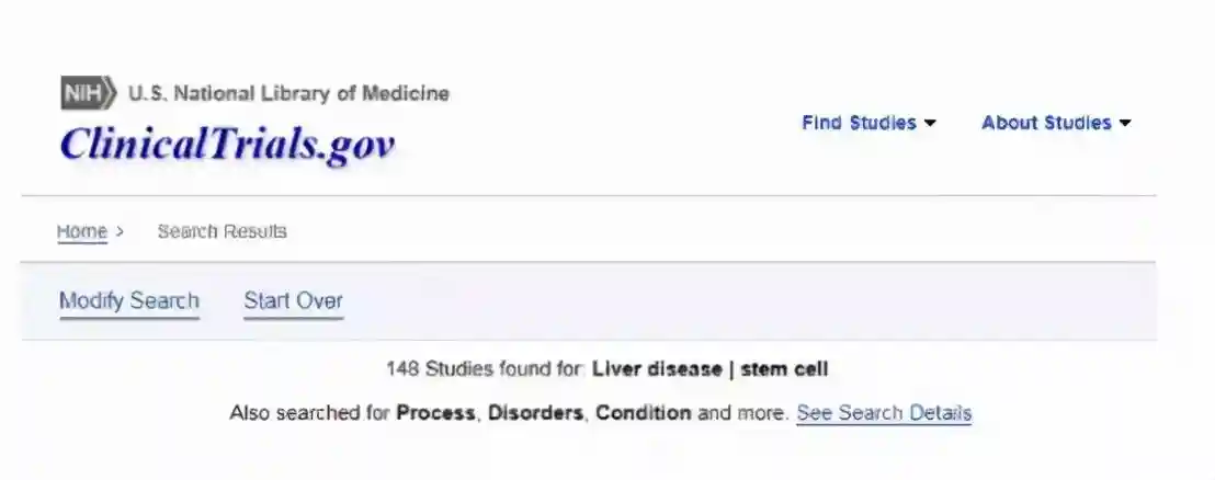 国内外已经有多项干细胞治疗肝病的临床试验登记注册,截止2020年3月,在美国国立卫生研究院的最大临床试验注册库。