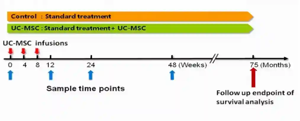 安全性:从长期安全性上看,脐带间充质干细胞治疗组没有发现明显的副作用和治疗相关并发症,没有比常规治疗更高的风险。