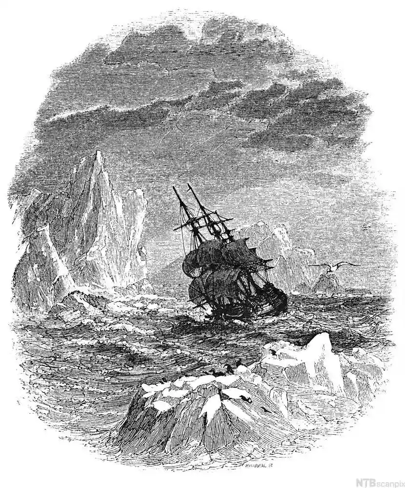 1838年,美国作家爱伦坡创作了他唯一一部长篇小说《楠塔基特的亚瑟戈登·皮姆的自述》(TheNarrativeofArthurGordonPymofNantucket),故事以旅行日记的方式呈现,以一位极地探险幸存者的口吻,回忆了自己的极地之旅。在序言中皮姆写到,自己之前一直不愿意将这段传奇故事付梓,担心读者怀疑故事的真实性。在编辑爱伦坡的催促下,他将其以虚构故事的形式出版。接着他讲述了自己如何登上捕鲸船,经历海难、叛乱、食人族,直至最后被另一艘船的船员救起,继续向南航行,途中遇见黑人土著,被困住,顺利逃脱的种种经历。在皮姆跟随船员一路向南极点进发的路上,小说戛然而止。
