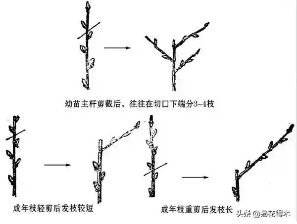 3、“剪肥不剪瘦”:就是在健壮的时候修剪,若是营养不足,对枝进行短剪后,枝托上很长时间不发新芽,即使发了芽,侧枝生长也不旺盛。