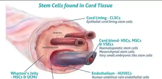 通常,从宝宝的脐带中可以分离出来四种间充质干细胞:脐带华通氏胶胶质(WJ)、血管周围区(PV)、羊膜下(SA)和羊膜(AM)。