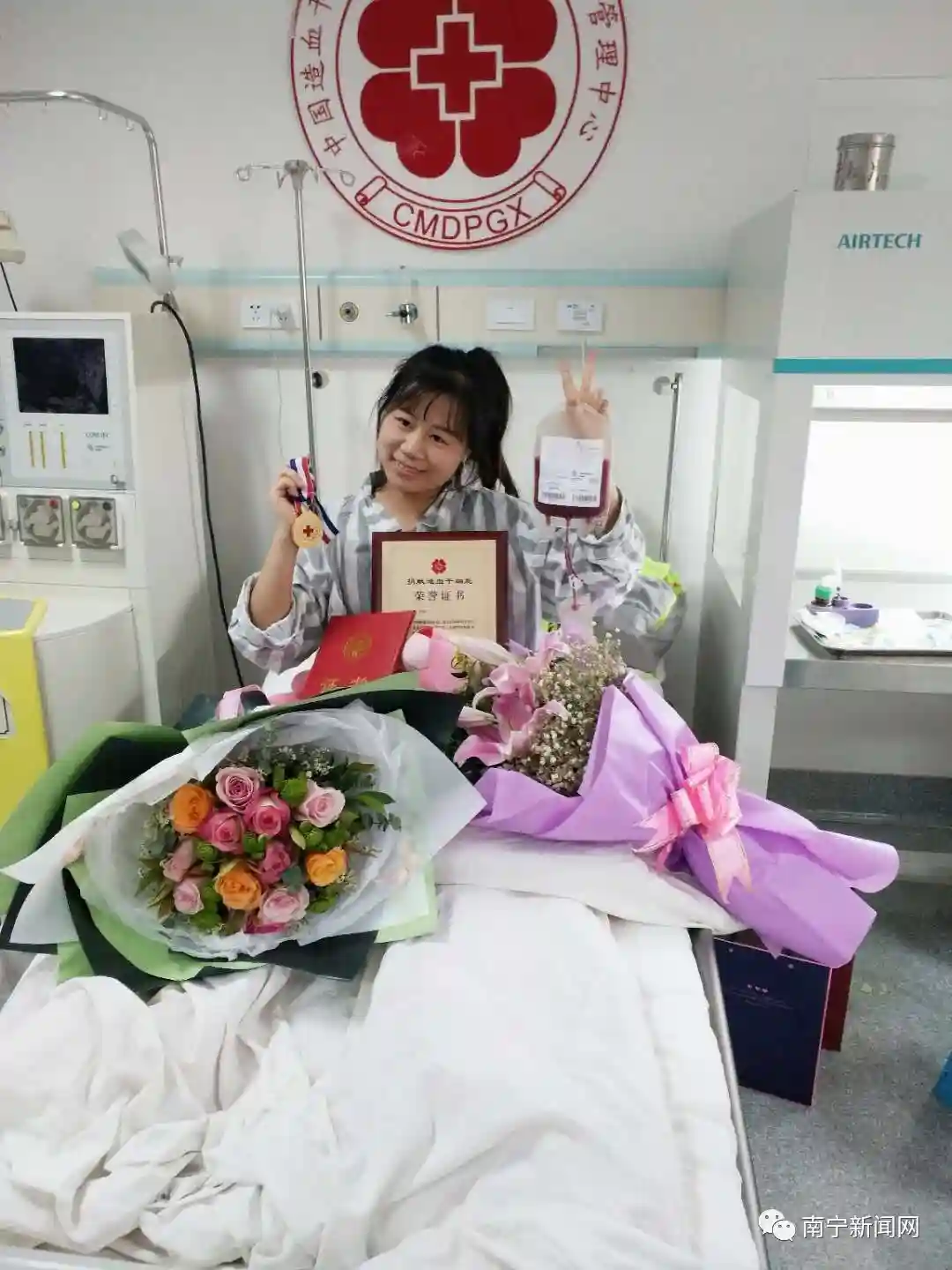 对于捐献的过程,马宇慧谈到:“整个采集过程比我想象中的要快很多,只用了3个半小时,身体也没有特别的不适,采集过程在大家的聊天陪护下很轻松就度过了。我的捐献证书是,之前全国已经有七千人成功捐献了造血干细胞,我的付出不算什么!自己抽点血就能救命,我觉得值得!”