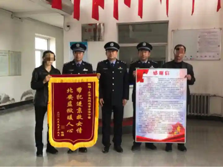 9月20日,北安市下着濛濛细雨。刘磊的父亲刘长松和母亲杜丽丽,来到北安监狱,将一名印有“带犯进京救女情北安监狱暖人心”的锦旗和一封感谢信,送到副监狱长徐春雷等民警的手中。