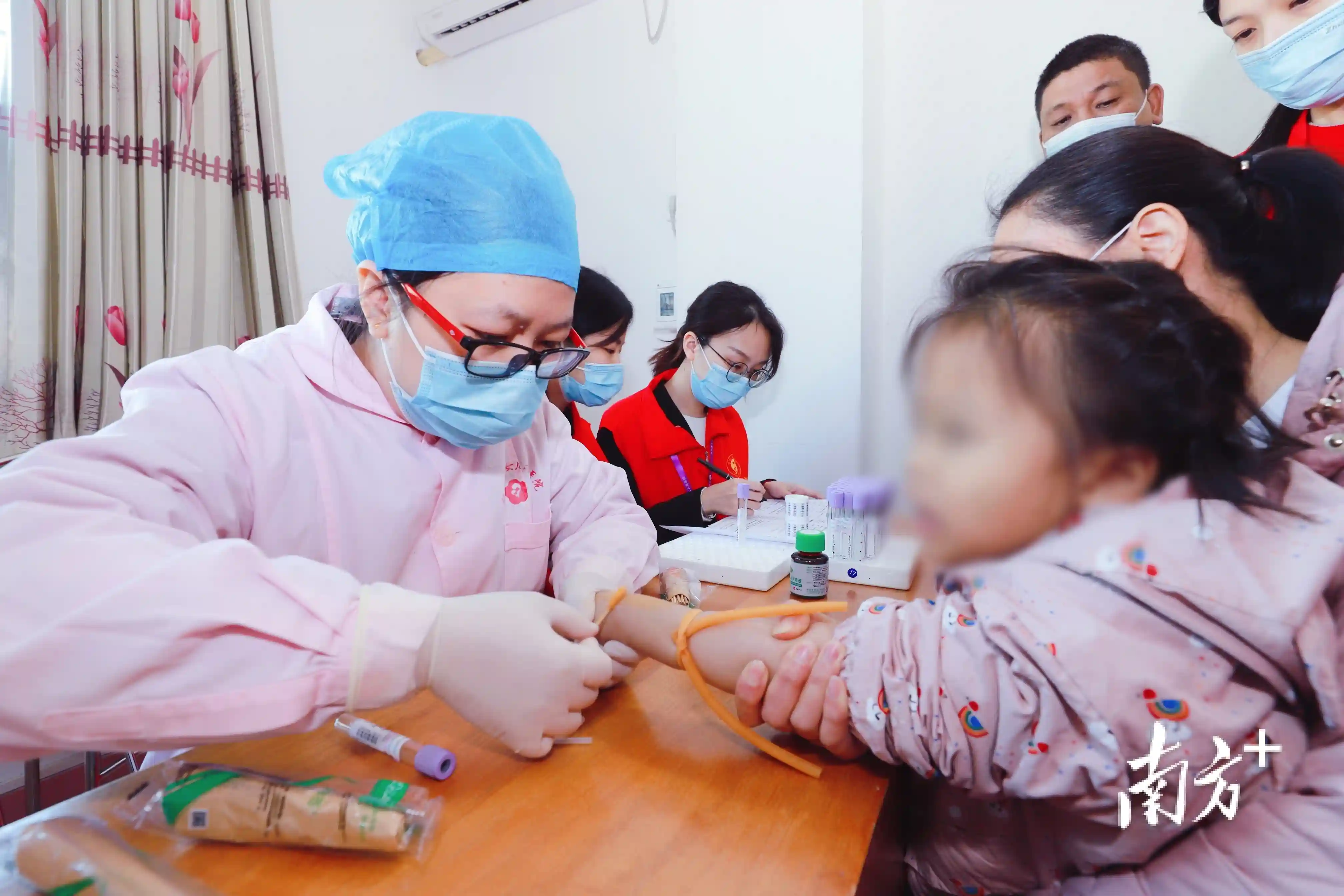 活动中,梅州市妇女儿童医院与南方医科大学南方医院、华大基因、北京京妍公益基金携手为梅州中、重型地贫患者HLA免费配型检测,为后续治疗作前期准备。