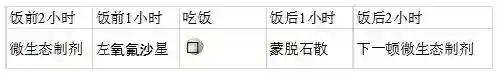 口服抗菌药物、蒙脱石散与肠道微生态制剂如整肠生、双歧杆菌活菌制剂等应两两间隔服用。尽量间隔1小时以上,举例如下图所示: