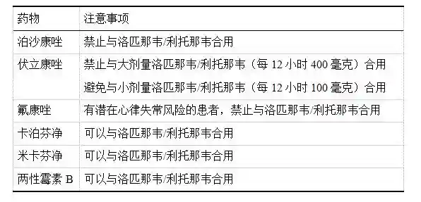 表1常用抗真菌药物与洛匹那韦/利托那韦的合用注意事项