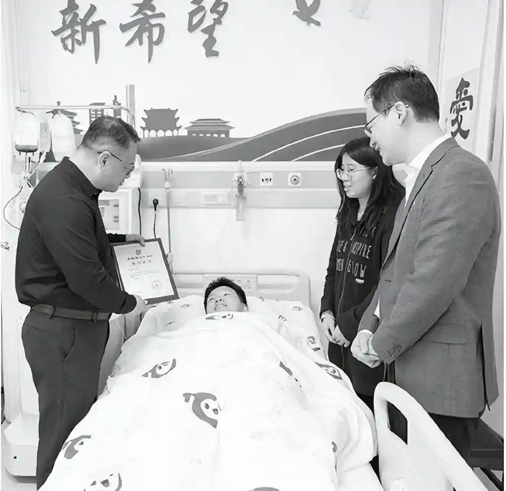 同事和红十字会工作人员到医院看望徐梓昊。