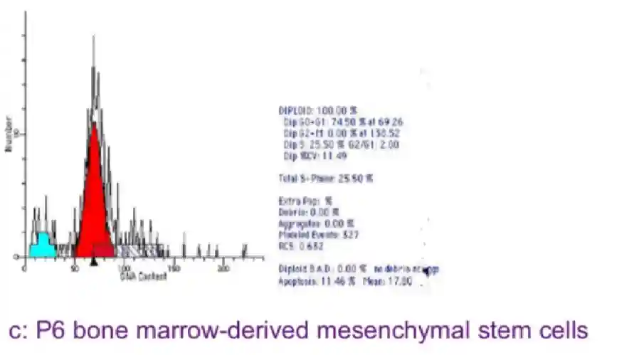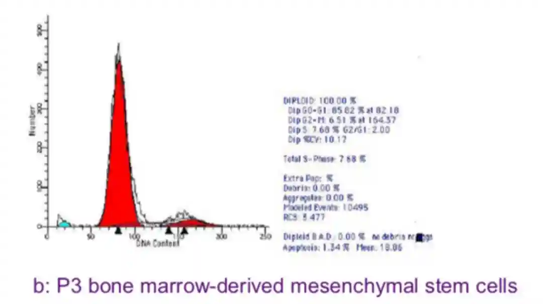 P3代凋亡1.34%,P6代凋亡11.4%,P3代细胞存活周期长,在体内发挥作用的时间也更长