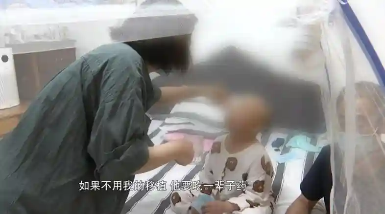 “孩子的指甲全掉了、全烂了,就这么一抽血,血都哗哗往外冒。孩子的耳朵、脸部全烂了,连嘴角都是烂的。肚子疼,一吃就吐。要么就是拉。”俊俊的妈妈李女士告诉记者。俊俊被确诊为“红细胞生成性原卟啉病”,要想取得好的治疗效果,医生建议的方案是进行肝移植桥接造血干细胞移植。可是,用谁的肝脏、造血干细胞进行移植呢?此时,俊俊的妈妈做了一个决定,自己割肝、捐骨髓救儿子。俊俊妈妈告诉我们,“大夫这么跟我说的,你孩子的这个情况,我建议用你的肝,这是第一步。第二步用你的骨髓,能停排异药,要不用我的情况下,孩子要吃一辈子药。割了半斤肝给我孩子了,但是他的肝功能一直不稳定,必须换血,如果不换血,卟啉根本排不下来。谁碰到这种情况谁都会付出的,你不付出,孩子这么大的病,怎么办?”