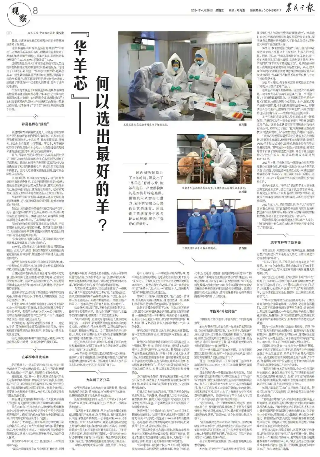 这些数据让兰州大学草地农业科技学院反刍动物研究所教授王维民和他的团队感到很振奋。他们用了9年时间,研发出了“华羊芯”育种芯片,能够在羔羊一出生就检测其是否携带特定基因,预测其未来的生长潜力,而不再需要经历漫长世代的选育。还规避了传统育种中误差较大的弊端,提升了选育的准确性。