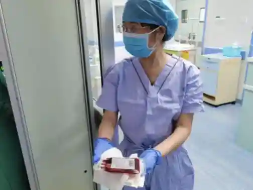 当天一早,山东脐血库的工作人员带着装着“小蘑菇”脐带血的液氮罐来到了血液内科病区。脐带血从液氮罐的白色器物中被取出,小心翼翼递入移植仓,所有人都如履薄冰,像捧着一个生命的希望。