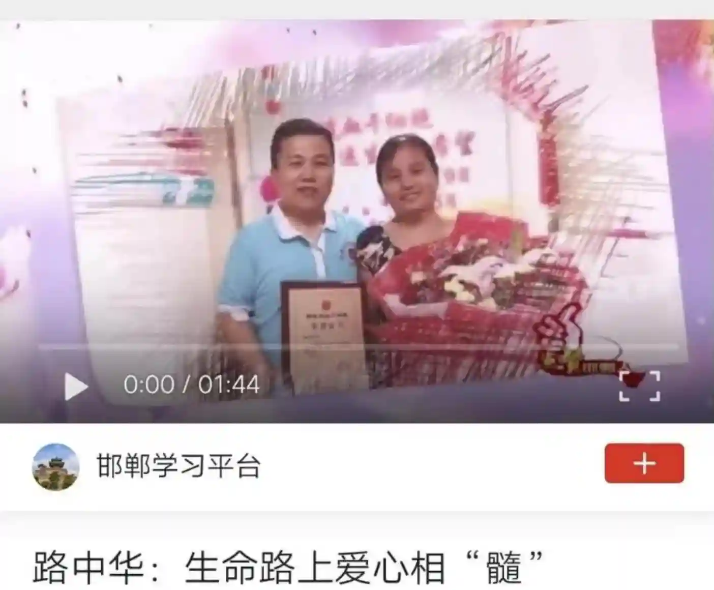 5月29日上午,路中华成功完成造血干细胞捐献从省城归来,成为中华骨髓库第9698例河北省第458例邯郸市第116例成功捐献者,被授予广平县“爱心大使”。