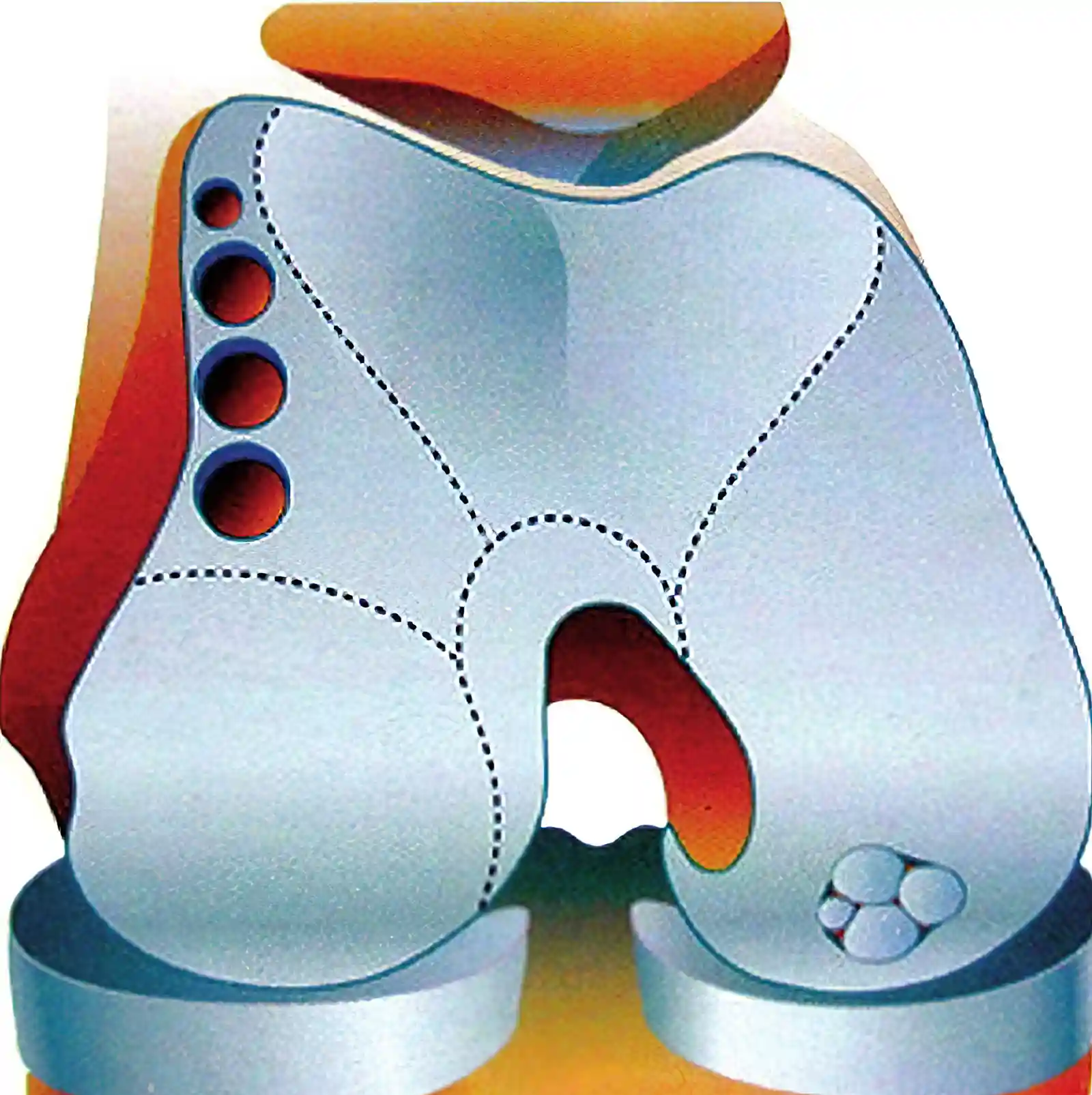 第二种是自体软骨移植术,从自身股骨滑车非负重区域取小块软骨,移植到负重区软骨缺损处进行紧密嵌合与压紧,形似打马赛克也叫“马赛克技术”。