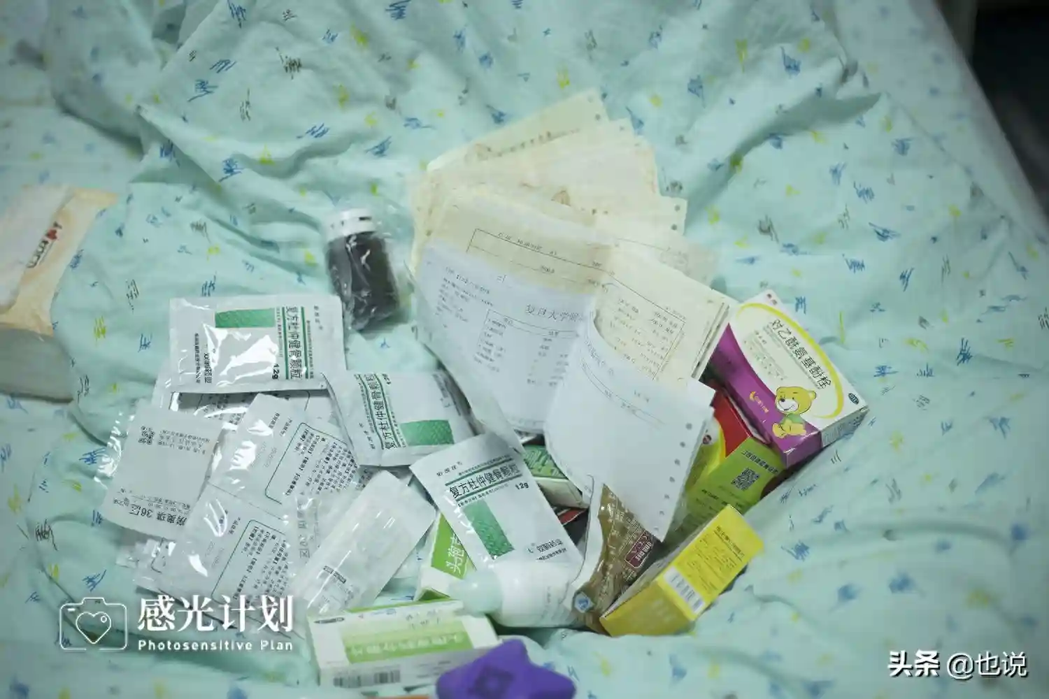 2018年11月26日晚上11点,奥琪突然全身发热,大冷天把被子也蹬了,给了量了体温39度多,还吐血块。我们连夜把他送到县医院,直接进了ICU,抢救了三天。第三天的时候奥琪问我:“妈妈,药吃多了会死吗?”这时候我才知道奥琪偷偷的吃了七颗硫唑漂呤。”当我问奥琪为啥要多吃药时,奥琪哭着说,家里的钱都让他花完了也看不好,如果一下子死了就不用花钱,也不用受罪了。