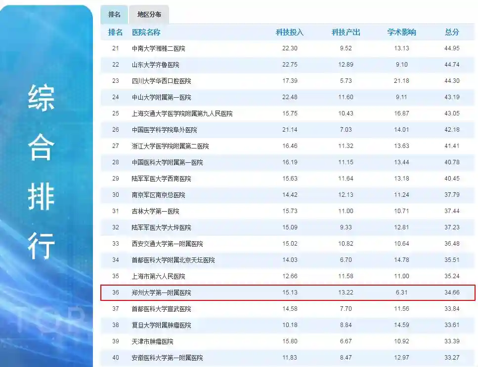 放眼全国,河南医院综合实力“杀进”全国前50的是