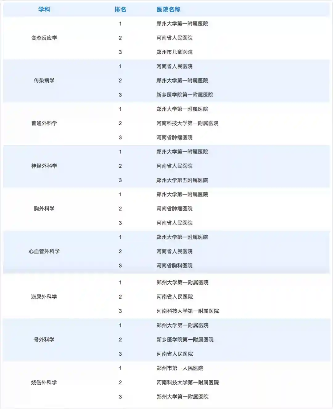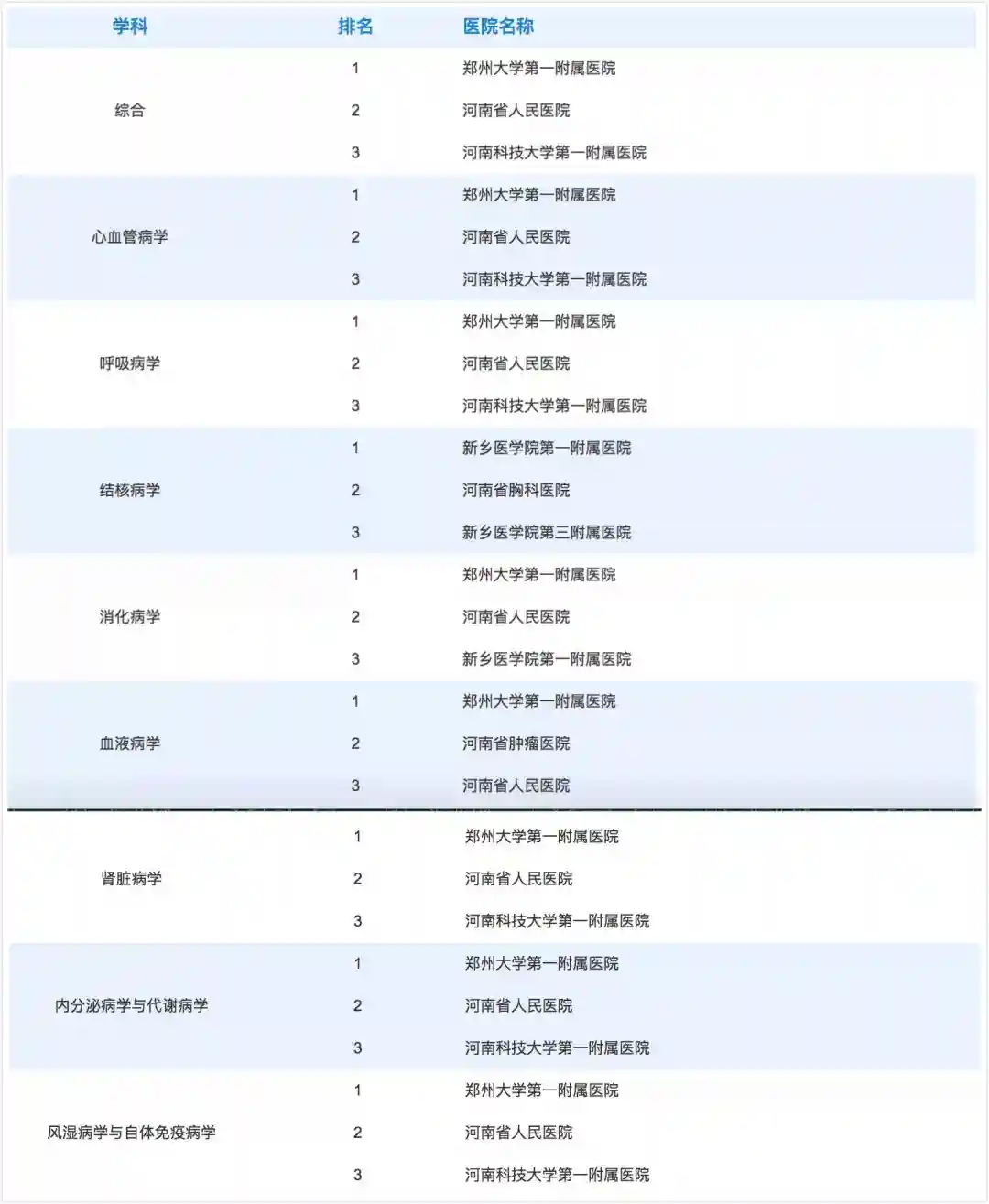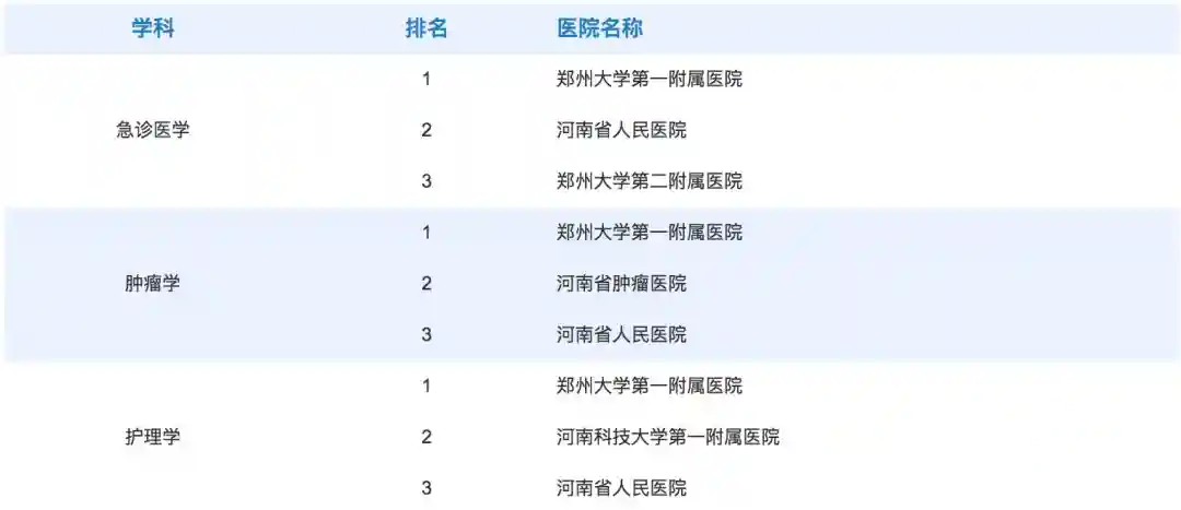 河南省29个学科哪些医院是前三甲?