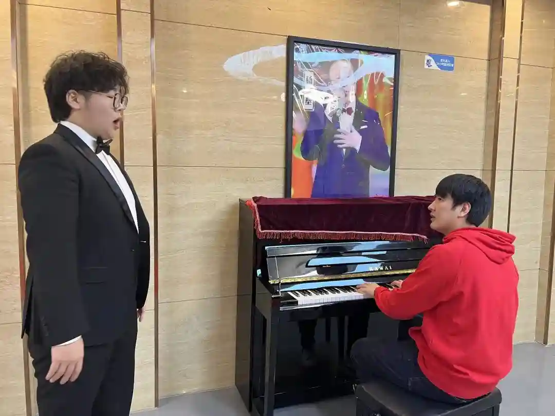 周昊雨在戴玉强开办的培训学校里做艺考声乐老师,他正在给学生教学。(受访者供图)