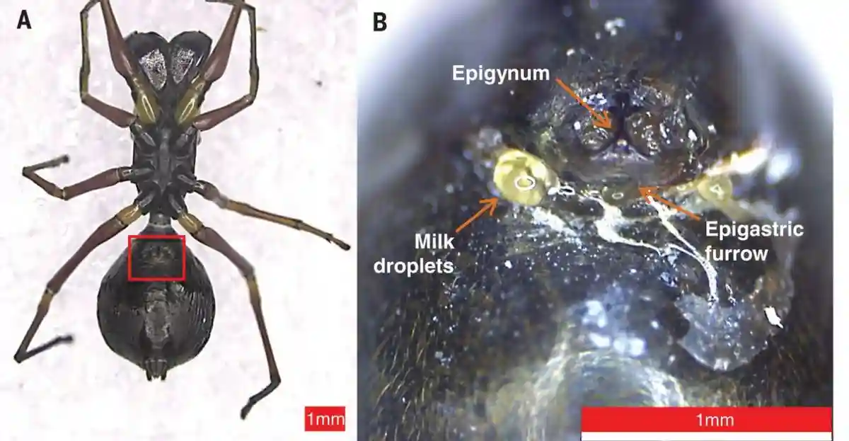 是的,你没听错,蜘蛛也可以产奶。在2018年,中国科学院西双版纳热带植物园的行为生态学家陈占起和权锐昌,发现了一种会分泌乳汁的蜘蛛。