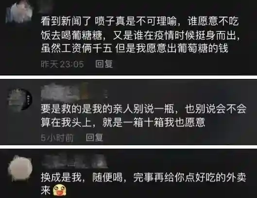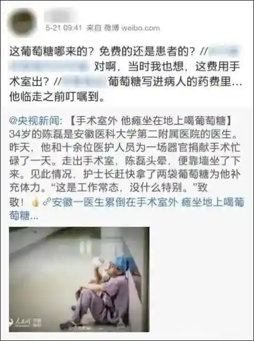 更多的网友则力挺道,医生为了救治患者辛勤工作,他们愿意支付那瓶葡萄糖的费用。