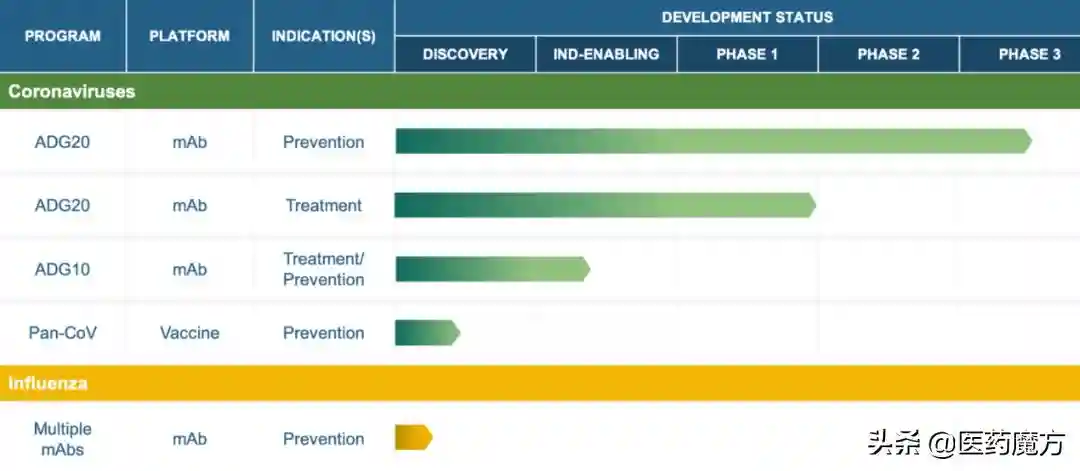 AdagioTherapeutics成立于2020年6月,总部位于美国马萨诸塞州,是一家临床阶段的生物制药公司,专注于发现、开发和商业化具有治疗和预防传染病潜力的抗体解决方案。Adagio的创始科学家在Adimab工作时发现了ADG20,该产品现在是Adagio的主要候选产品,用于治疗和预防COVID-19,或由SARS-CoV-2及其突变体引起的肺炎等疾病。