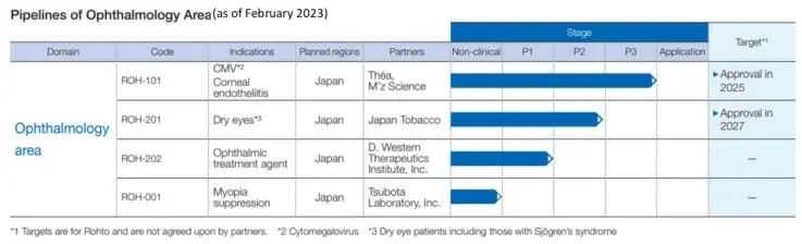 下图为截至2023年2月的眼科在研产品管线: