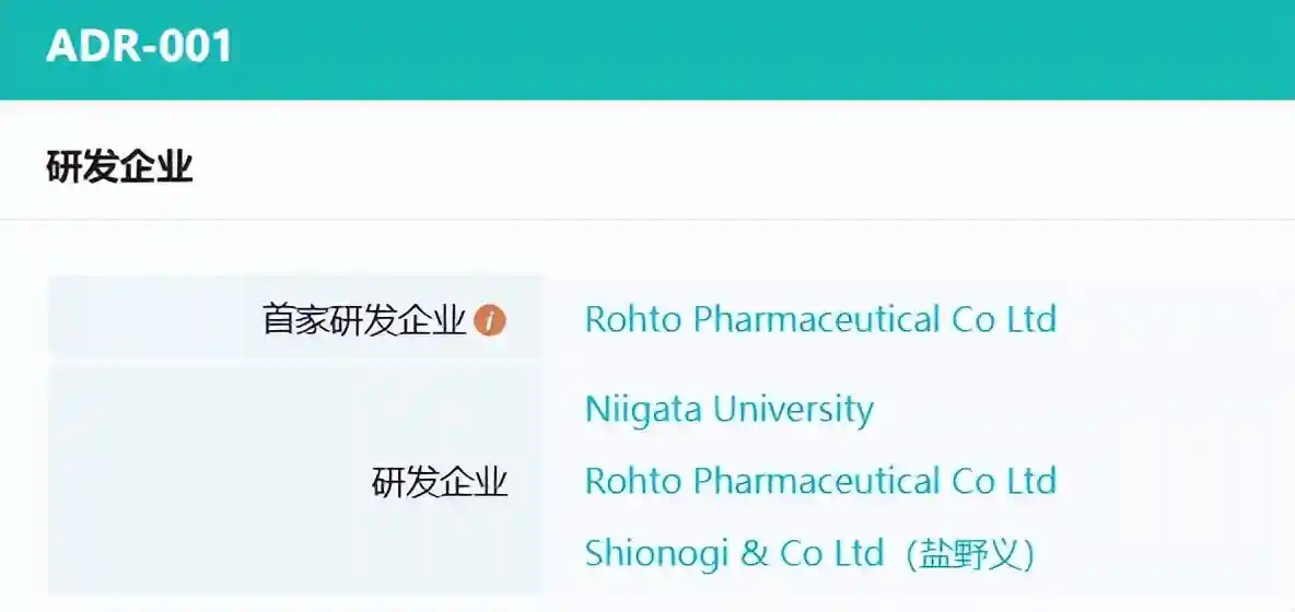 ADR-001是使用人源异体脂肪组织干细胞作为构成细胞的细胞制剂。制剂中使用的人体脂肪组织干细胞,不包含可能引入动物病毒感染的动物源原料,并使用乐敦自主研发的能够最大限度优化脂肪干细胞表达的无血清培养基进行培养。该产品最初由新泻大学与乐敦制药合作开发,目前主要开展了肝硬化、肾脏疾病、严重的腿部缺血、肺纤维化,以及COVID-19肺炎的临床研究。其中,在日本开发肝硬化适应症的权益已在2018年授权给盐野义制药,目前处于2期临床研究阶段。