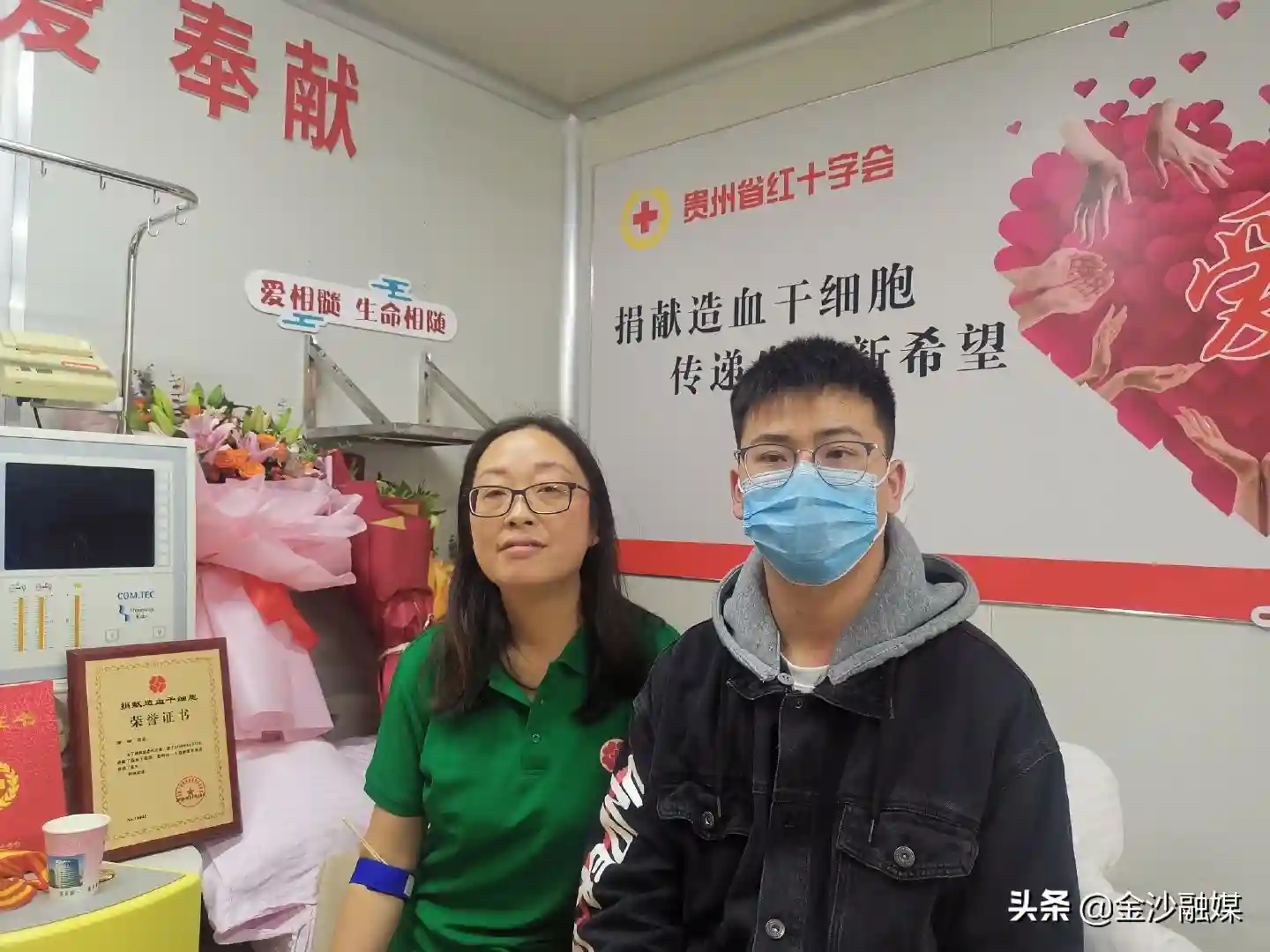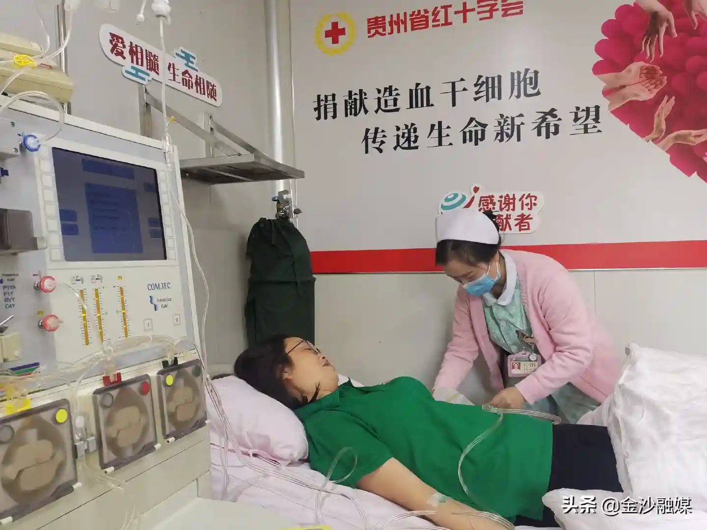 11月12日,金沙县红十字会的罗琼在贵州省人民医院成功进行造血干细胞采集,成为毕节市红十字会系统第1位造血干细胞捐献者,她捐献的造血干细胞将用于挽救一名血液病患者的生命。