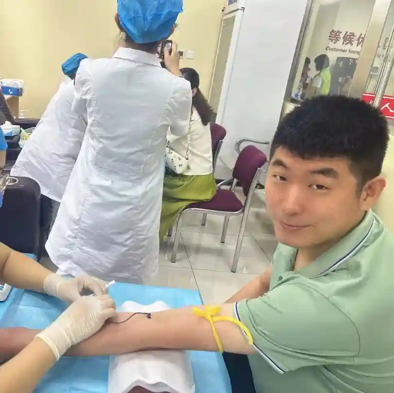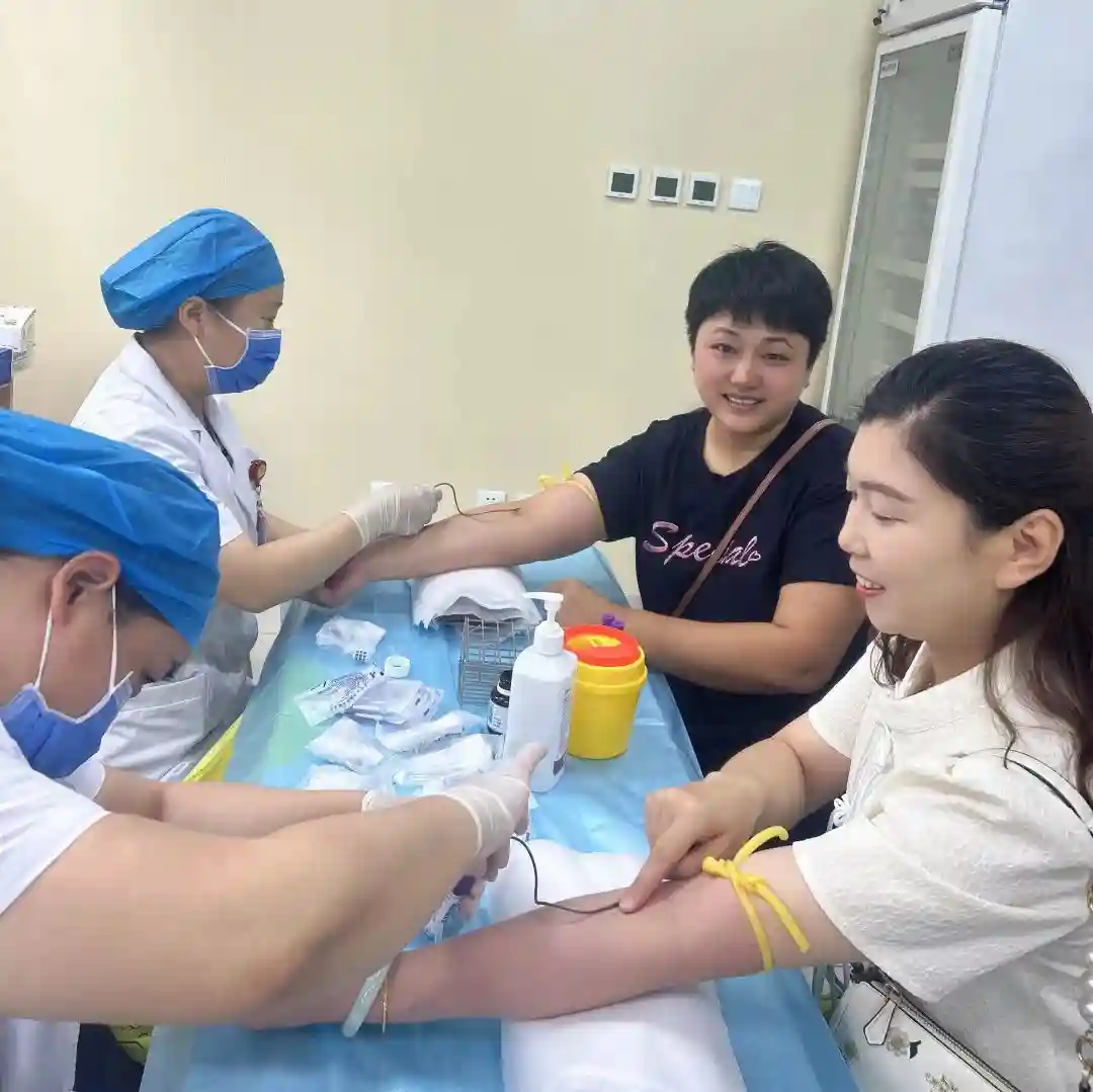 7月4日上午,在清爽的小雨中,四人来到门头沟区中心血库献血大厅,参加造血干细胞血样采集。