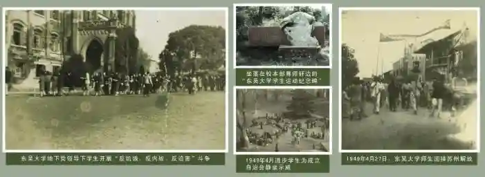 1949年是中华人民共和国历史上永远被铭记的一年,这一年新中国成立,这一年江苏解放,而经历了半个世纪沧桑的你也将迎来自己的新生。1952年院系调整,由东吴大学之文理学院、苏南文化教育学院、江南大学之数理系合并组建苏南师范学院,同年更名为江苏师范学院。1982年,更复名苏州大学(SoochowUniversity)。其后,苏州蚕桑专科学校(1995年)、苏州丝绸工学院(1997年)和苏州医学院(2000年)等相继并入。四校的合并使你进入了全新的发展阶段。这是新的开始,大道不辞,大任始承,你向着未来,吹响时代的号角!